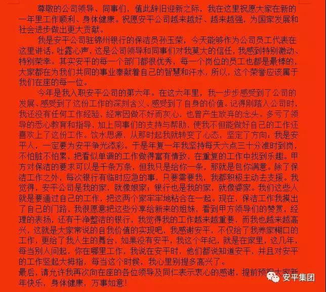 接下來有請優(yōu)秀員工代表孫玉榮發(fā)言
