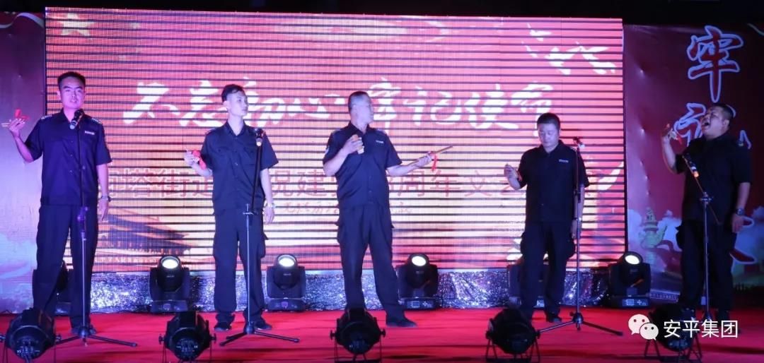 同時,安平物業(yè)黨支部選送兩個優(yōu)秀的節(jié)目,參加此次文藝演出,快板書《歌頌黨》,由安平物業(yè)的五位保安員傾情呈現(xiàn),他們用輕松愉快的演出形式,朗朗上口的語言,演繹出黨支部一九年來取得的各項成績,用他們自己的方式贊美黨,祝福黨,歌頌黨。