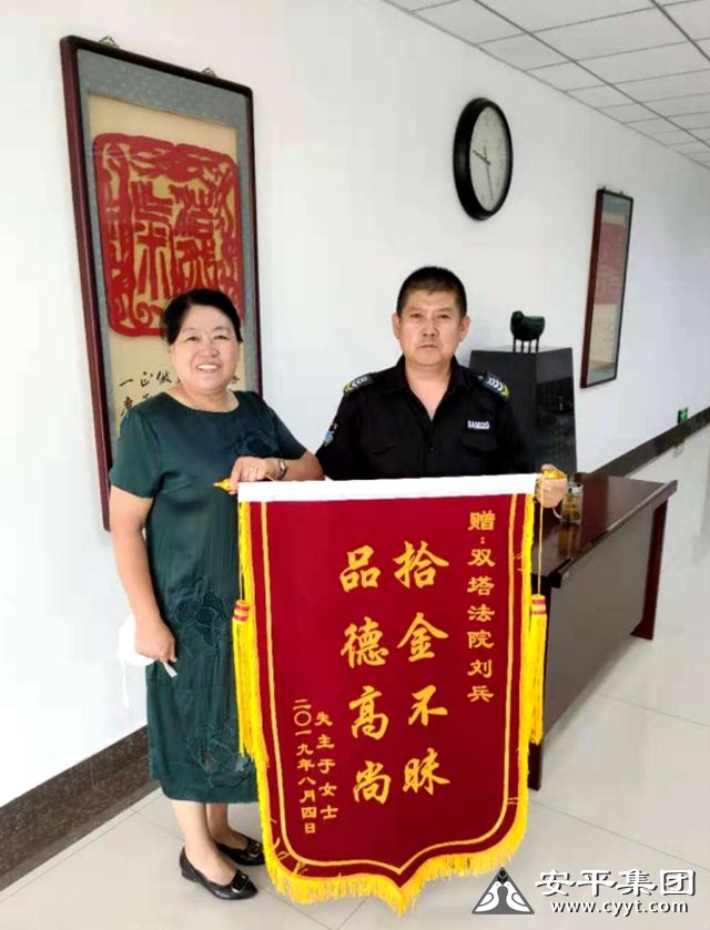 當劉兵接過印有“拾金不昧,品德高尚”字樣的大紅錦旗時,露出了靦腆的微笑。他對送錦旗的于女士說:“這都是不值一提的小事兒,每一個安平人都會這么做的。”