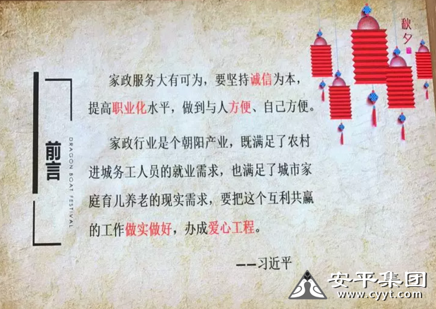 安平做家政20多年,不管拓展任何新業(yè)務(wù),對家政一直都很重視,不斷學(xué)習(xí)先進(jìn)、高端的家政理念融合到公司。把事業(yè)做強(qiáng)做大,是安平一直追求的目標(biāo),家政36條的發(fā)布以及信用平臺體系的建設(shè),讓我們看到了國家對家政事業(yè)的大力支持,看到了家政服務(wù)業(yè)的春天,接下來我們將積極響應(yīng)國家政策、各級領(lǐng)導(dǎo)號召、促進(jìn)家政服務(wù)質(zhì)量進(jìn)一步提高,基本實(shí)現(xiàn)專業(yè)化、網(wǎng)絡(luò)化、規(guī)?;l(fā)展。借助集團(tuán)旗下中天職業(yè)學(xué)校強(qiáng)大的專業(yè)技能培訓(xùn)支持,達(dá)到解決人員流動性大的后顧之憂,借助信用平臺體系的建設(shè),讓我們能夠大刀闊斧的發(fā)展家政事業(yè)。